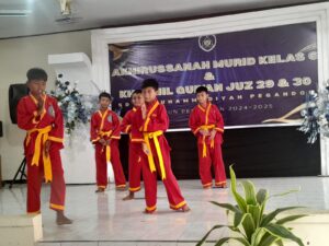 Acara akhirussanah juga dimeriahkan dengan penampilan siswa dari kelas II hingga V. Berbagai atraksi seperti baris-berbaris dari Hizbul Wathan, pertunjukan bela diri Tapak Suci, dan uji sambung ayat tahfidz menambah semarak acara, sekaligus menunjukkan hasil nyata pendidikan karakter dan spiritual yang diterapkan di sekolah.