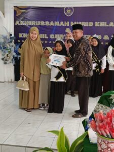 Dalam kesempatan tersebut juga diberikan penghargaan bagi siswa berprestasi dan penyerahan sertifikat kepada seluruh siswa yang telah hafal Alqur’an juz ke 29 dan 30.