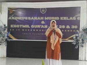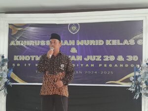 SD Islam Terpadu (SD IT) Muhammadiyah Pegandon, Kabupaten Kendal, menggelar Akhirussanah dan Gebyar Tahfidz Qur’an Juz 29 dan 30 sebagai penanda berakhirnya masa belajar 30 siswa kelas VI sekaligus wujud syukur atas capaian luar biasa mereka.