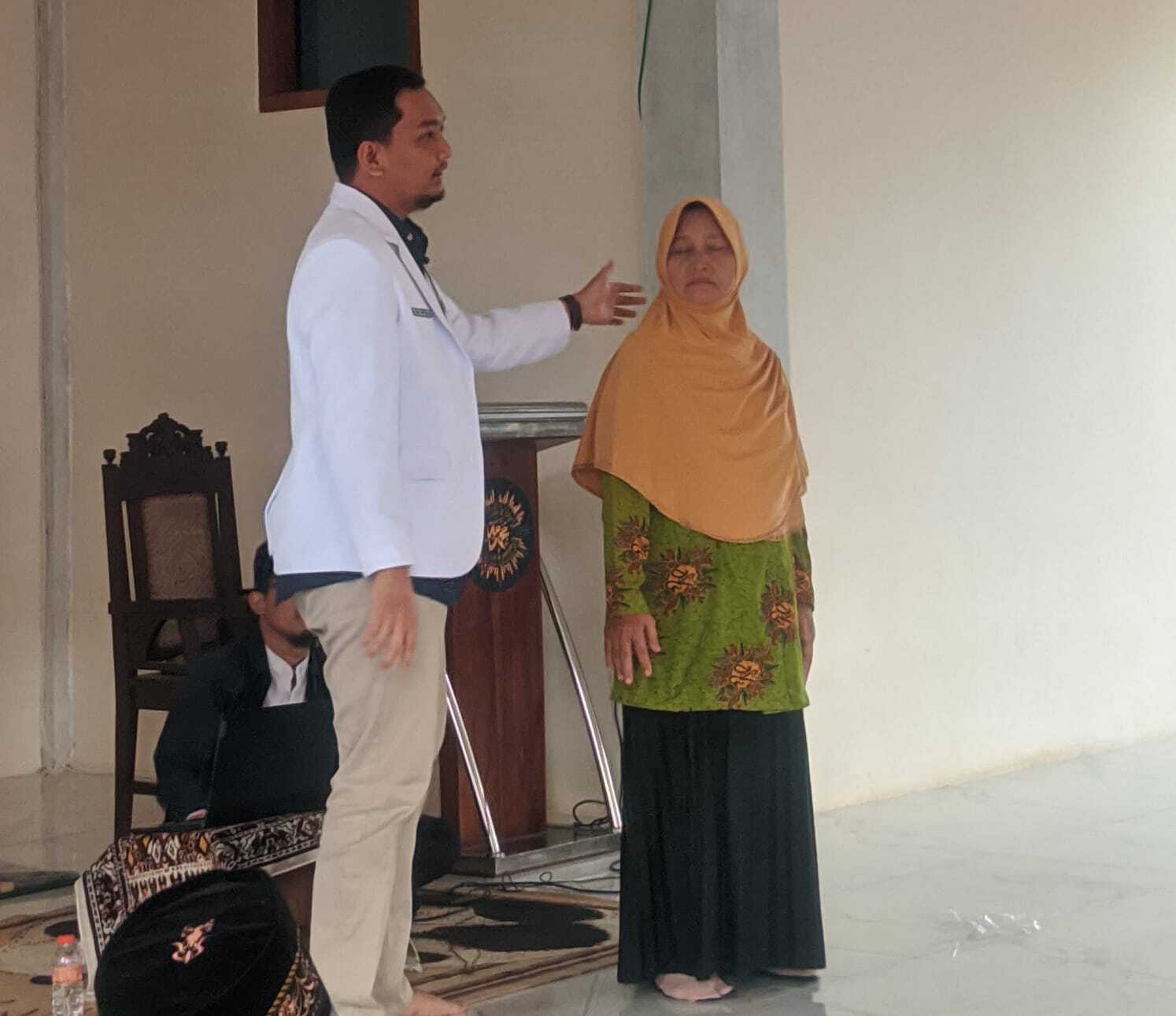 Pengajian semakin hidup ketika dr. Fahreza mengajak jamaah melakukan simulasi praktik deteksi dini, salah satunya tes vertigo sederhana.