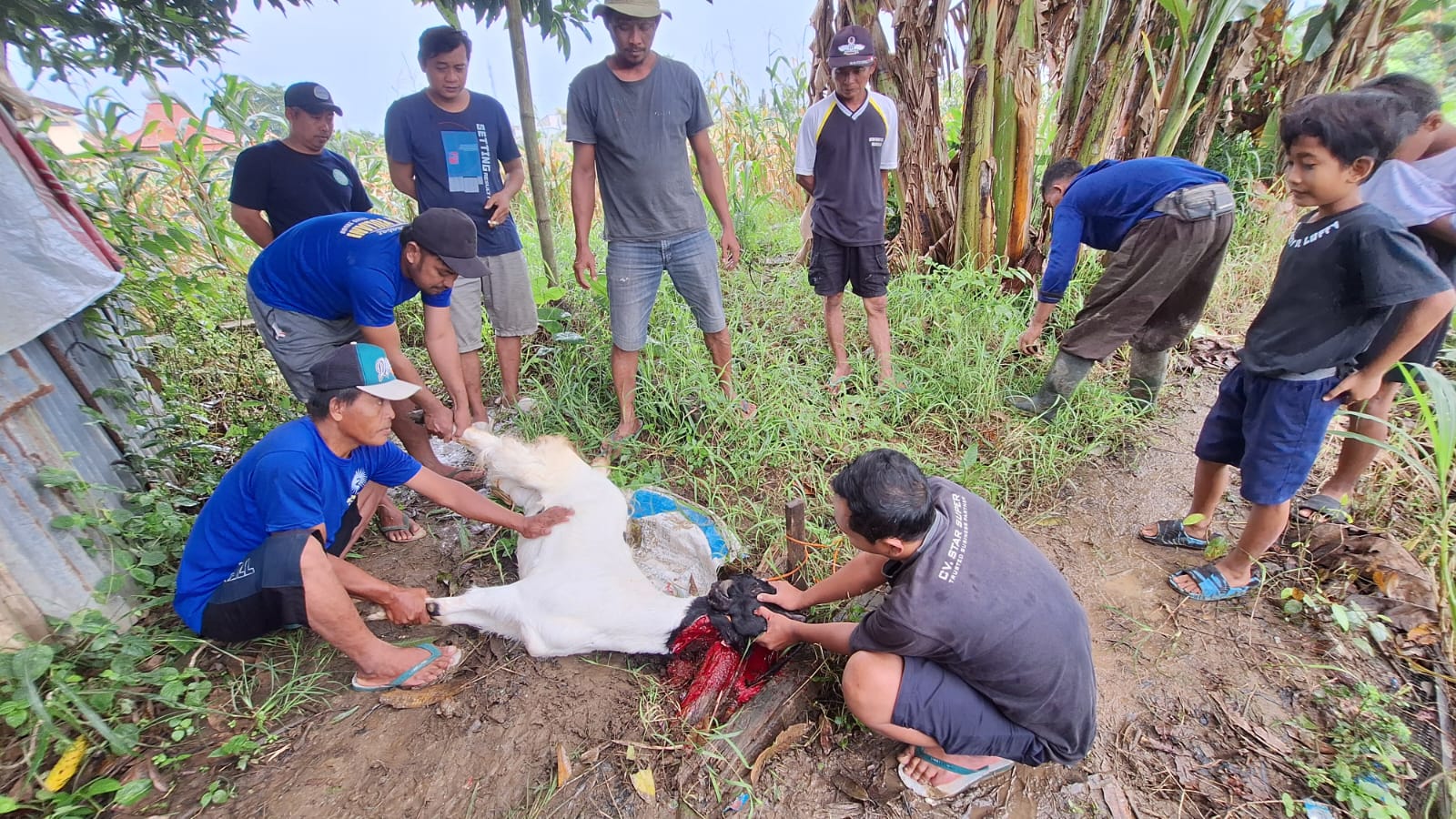 Para peserta dibekali materi teknis mengenai tata cara pengulitan kambing yang benar, aman, dan higienis, serta dilanjutkan dengan praktik langsung di lapangan.