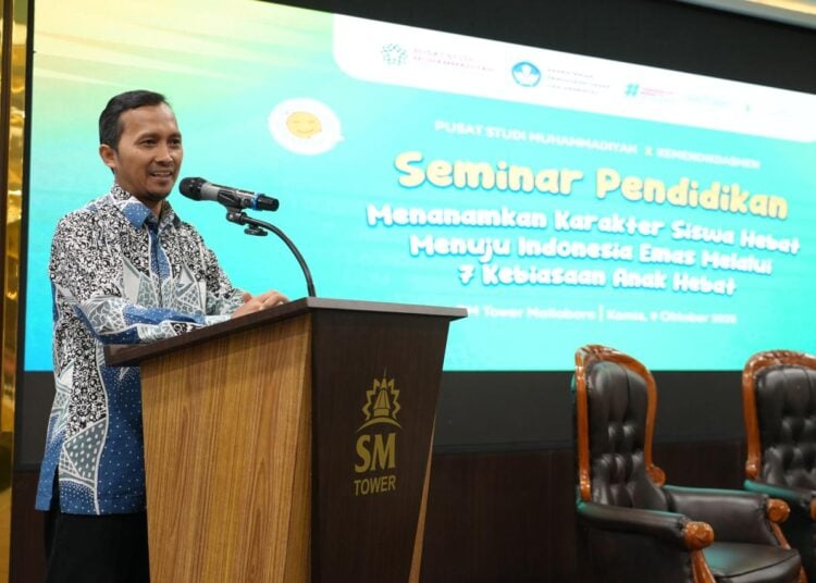 YOGYAKARTA, KENDALMU.OR.ID — Pusat Studi Muhammadiyah (PSM) bekerja sama dengan Kementerian Pendidikan Dasar dan Menengah (Kemendikdasmen) Republik Indonesia menggelar seminar pendidikan bertajuk “Menanamkan Karakter Siswa Hebat Menuju Indonesia Emas Melalui 7 Kebiasaan Anak Hebat” di SM Tower Malioboro, Yogyakarta, Kamis (9/10/2025).