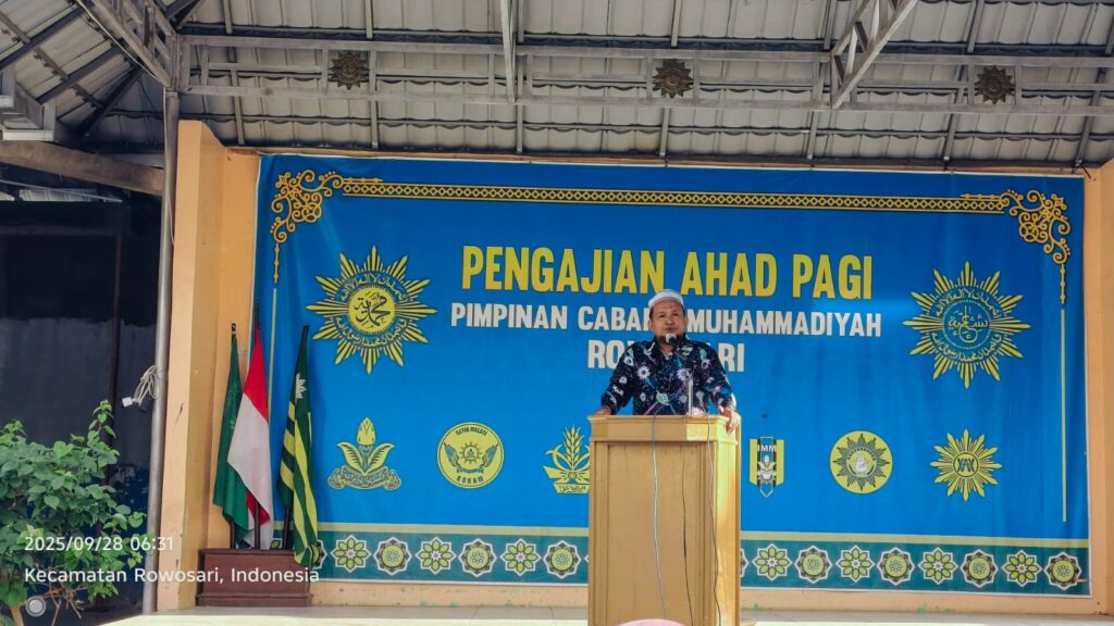 ROWOSARI, KENDALMU.OR.ID – Pimpinan Cabang Muhammadiyah (PCM) Rowosari melalui Majelis Tabligh menggelar pengajian ruti Ahad pagi, (28/9/2025) di halaman SP Muhammadiyah 11 (Muhas) Rowosari, Kendal.